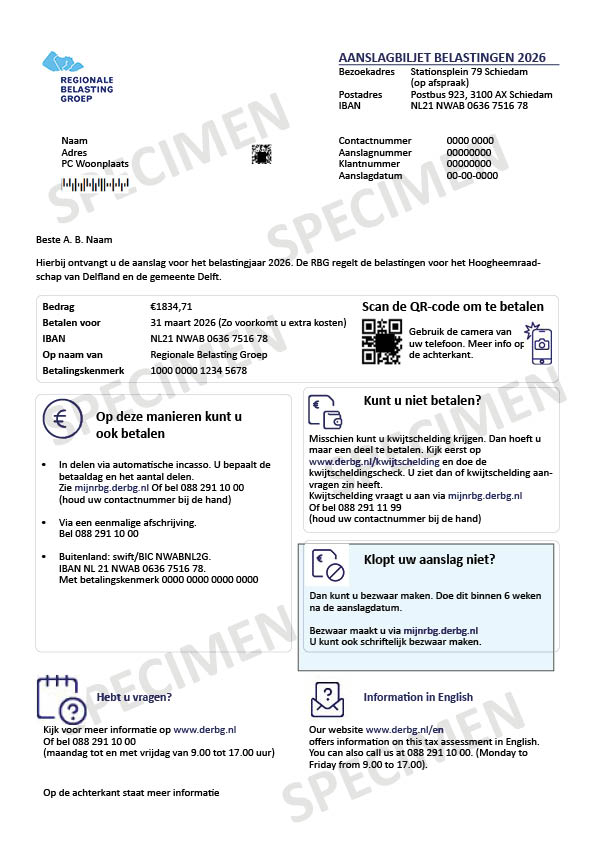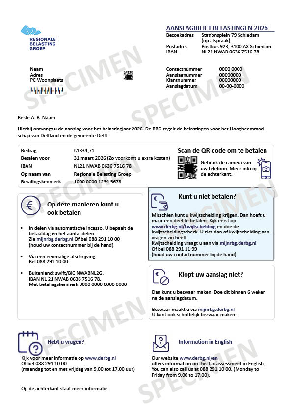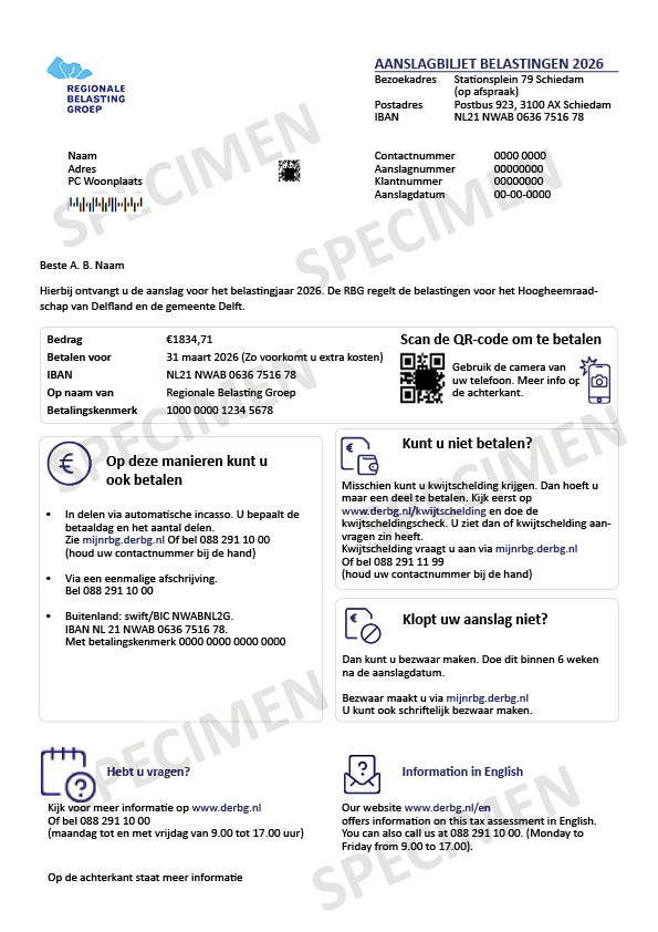 De RBG legt meerdere belastingen op. Welke belastingen op uw aanslagbiljet staan is afhankelijk van waar u woont en uw persoonlijke situatie.