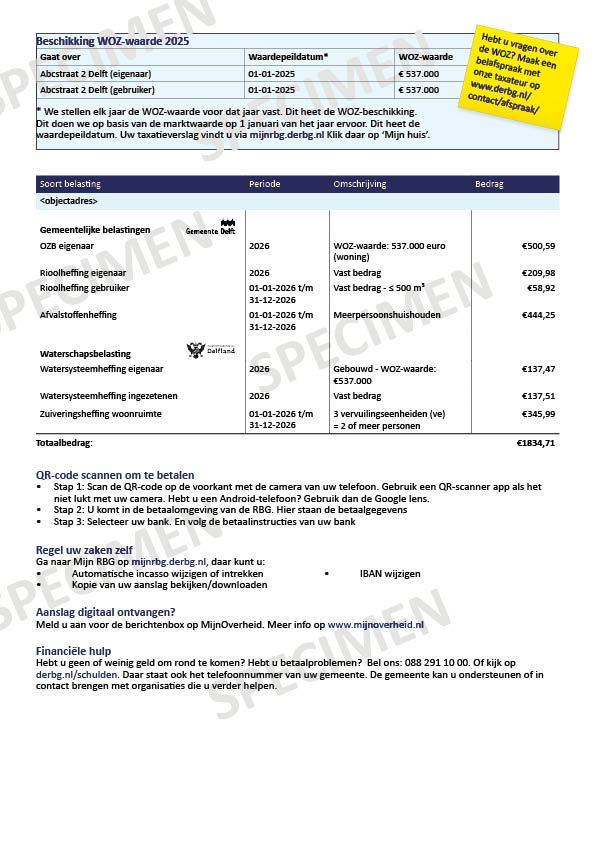The overview of taxes page list an extensive explanation for each tax. Some taxes are billed to the owner and the resident. For example the water system levy. Are you both the owner and the resident? Then you will receive two tax bills, one as the owner and one as the resident.